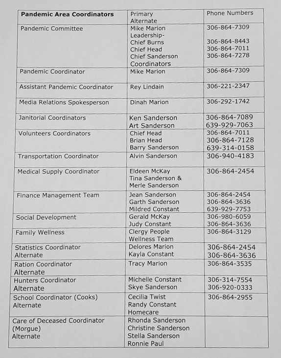 The Leadership and our Pandemic Committee appreciate your cooperation during this crisis and the best way to avoid infection is social distancing, self-isolation and disinfection. Further we would like to reassure each and every band member that we as First Nations people have persevered for thousands and thousands of years, we survived SMALL POX, we survived the 1918 Spanish Flu, and in modern times we survived H1N1; and we will survive through COVID 19.